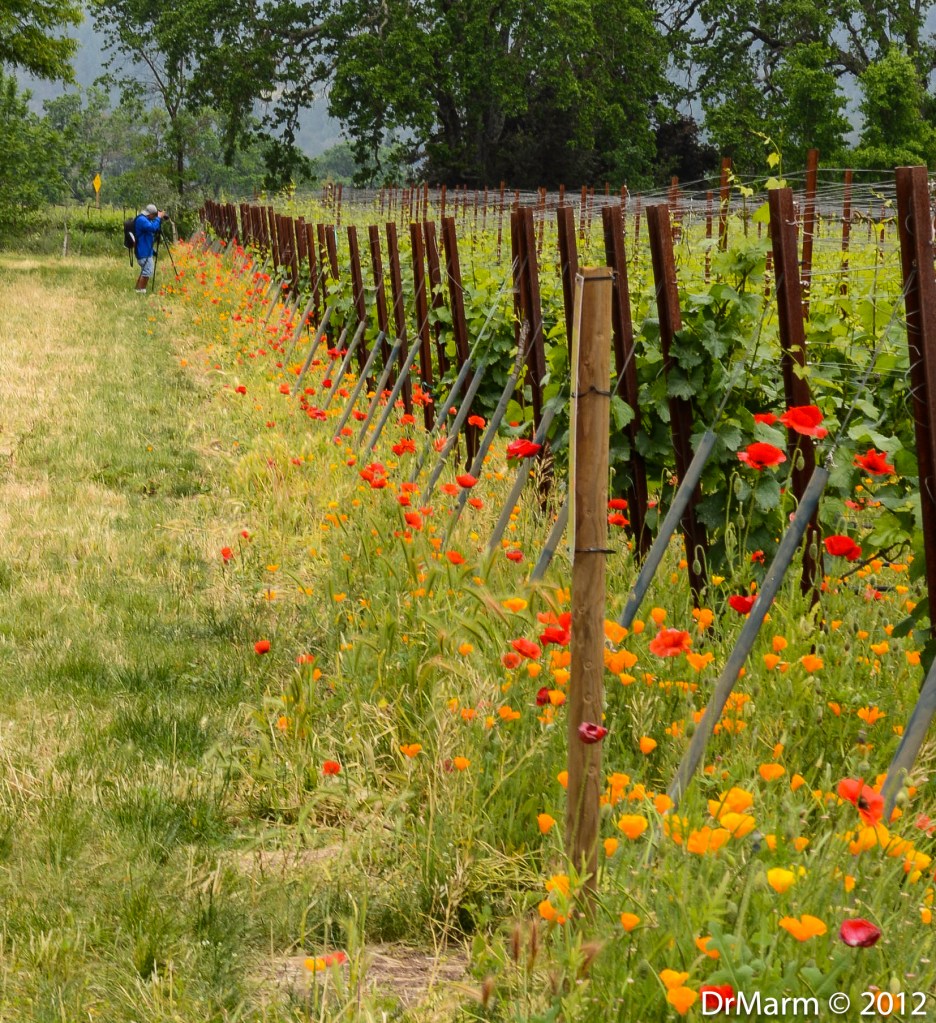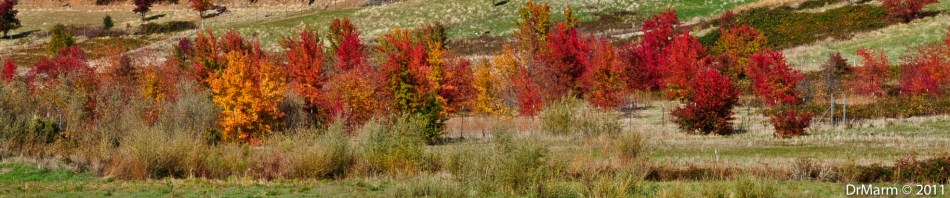 Love to take the back roads and enjoy the views…stopped by to catch this row of colors…managed to get it without trespassing–so would have liked a closer view, but had to respect the gate. Figured, I wouldn’t want folks traipsing down my driveway.