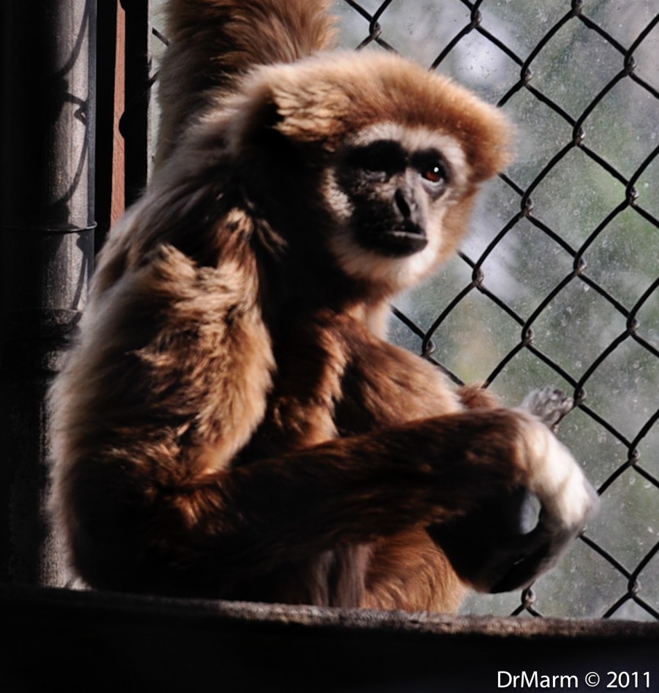 This was one of my favorites…his “whooping” and calls announced his presence long before he was in sight. Spent most of the time swinging through the cage and putting on quite a show.